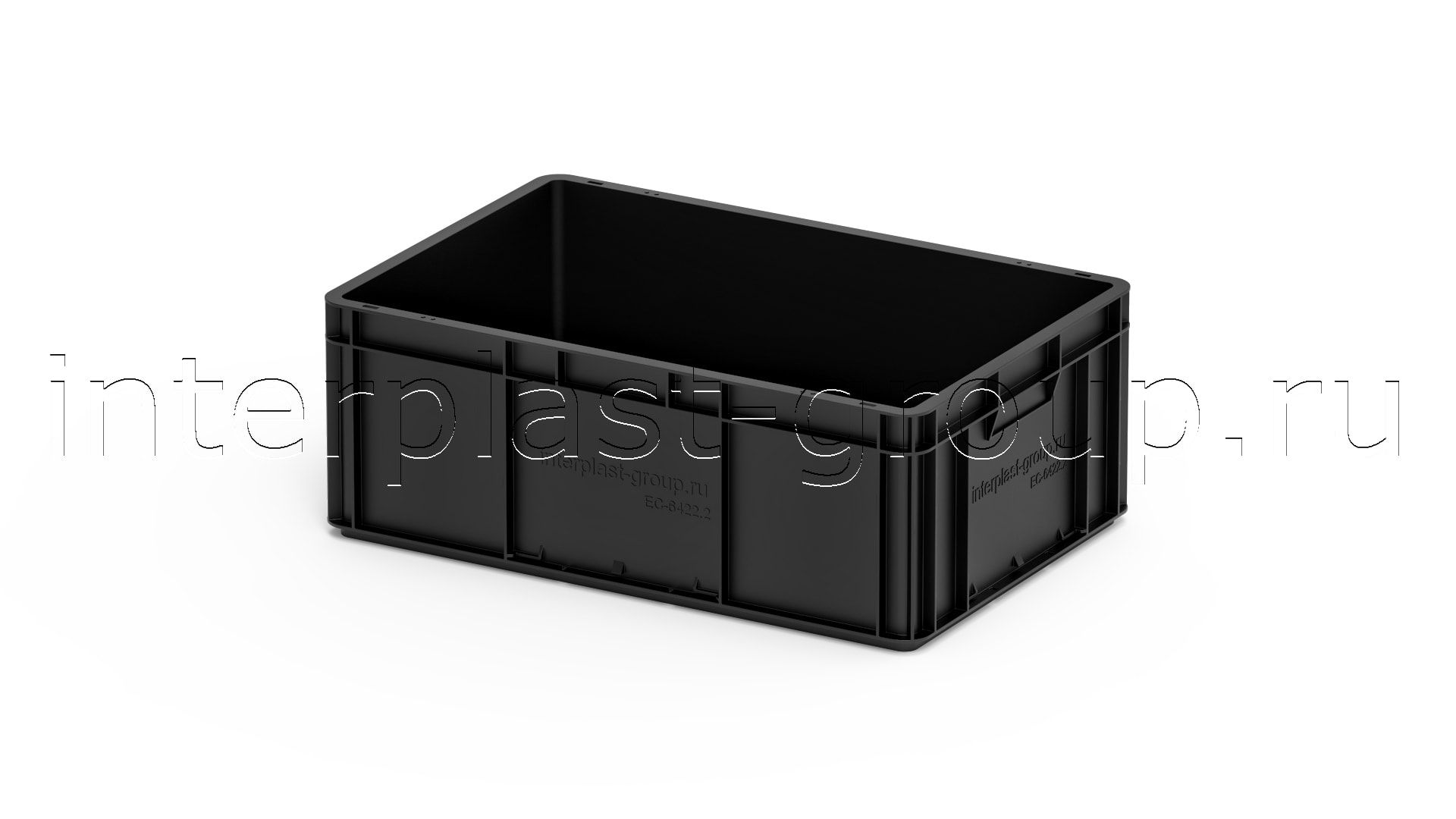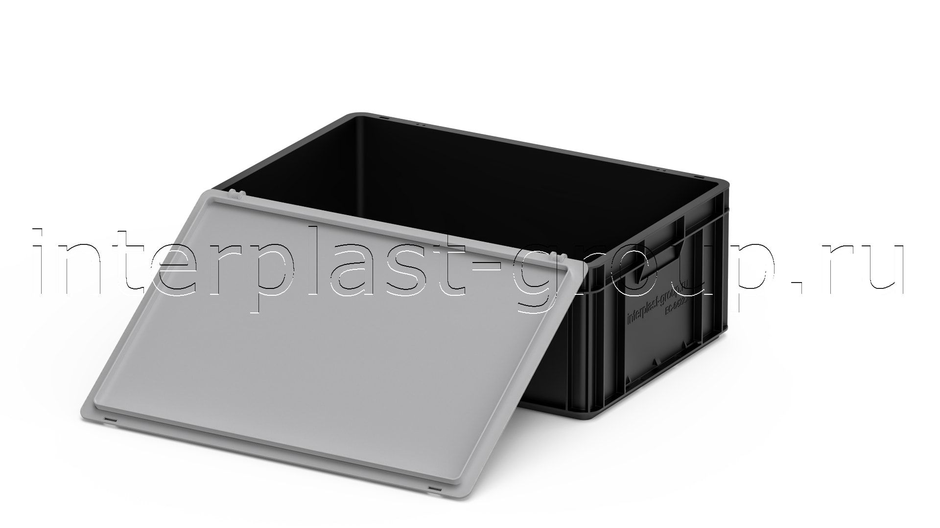 Евроконтейнер закрытые ручки/сплошное дно (черный), 600x400x220 мм