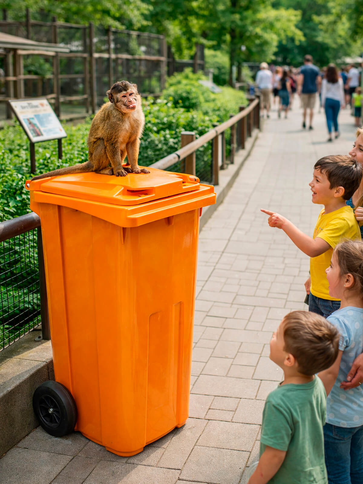 Оранжевый цвет помогает быстро идентифицировать контейнер, разделять типы отходов и улучшает визуальный контроль чистоты территории. На таких контейнерах часто располагают маркировку, связанную с переработкой или специфическими отходами.