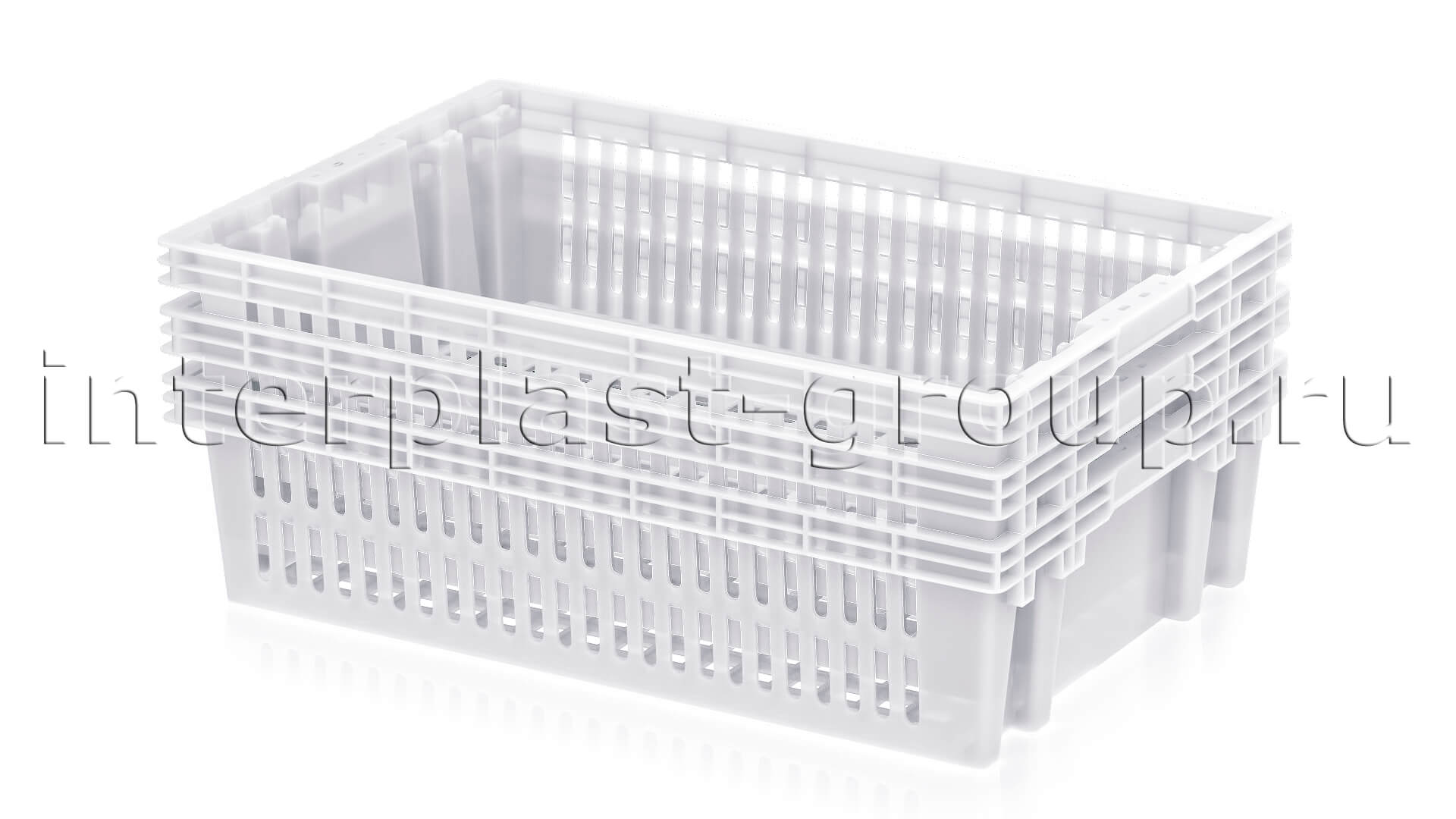 • Контейнеры вкладываются друг в друга, тем самым экономя до 60% места, при транспортировке и хранении
