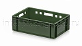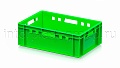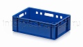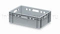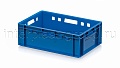 Данная модель применяется как контейнер универсальный и подходит для различных видов продукции. На практике ящик востребован как пищевой контейнер и контейнер для продуктов, включая ящик для мяса серии Е и ящик для колбасных изделий. Стандарт евростандарта позволяет использовать изделие как евроконтейнер в составе унифицированных систем хранения и транспортировки.