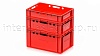 Красный ящик серии Е-2 используется как ящик для хранения и контейнер для хранения в охлаждённых и морозильных зонах, а также как ящик для склада и складской ящик в зонах сортировки и комплектации. Он удобен в роли ящика для транспортировки продукции между цехами и на этапах отгрузки.