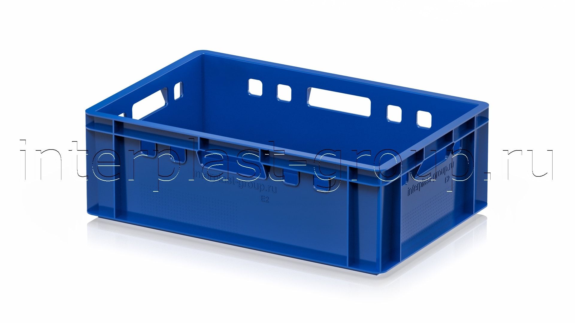 Ящик для мяса Е2 это второй по размеру в линейке мясных ящиков. Разработан специально для использования в мясной промышленности. Отлично штабелируется и собирается в единый сет со всеми ящиками серии. Изготовлен из первичного полиэтилена, и адаптирован для хранения в холодильных и морозильных камерах.