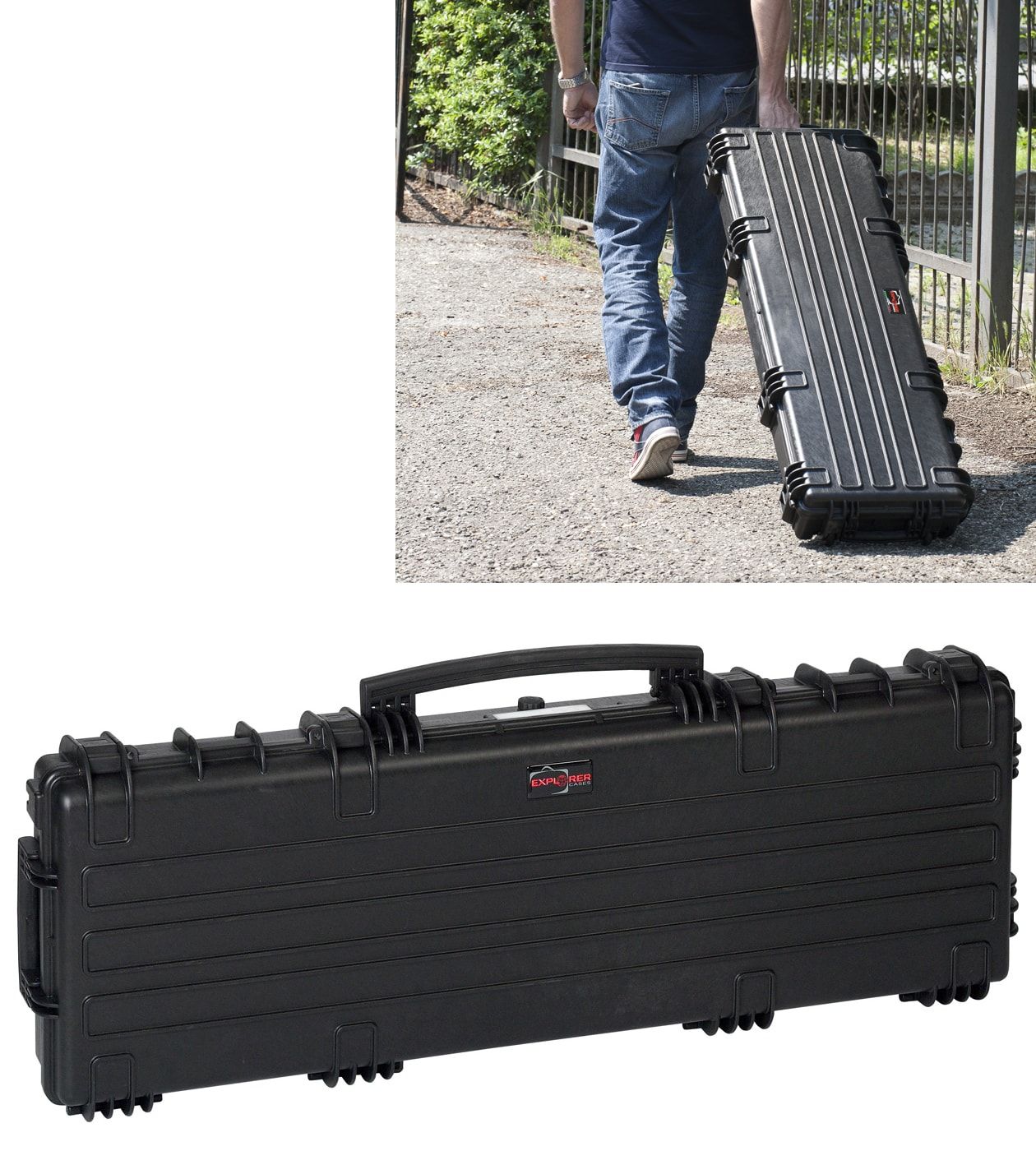 Прочные кейсы для стандартных штурмовых винтовок. Шарикоподшипниковые колеса и боковые ручки. Защелки с легко открывающимся механизмом.